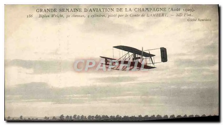 Cartes postales Aviation Avion Grande semaine d'aviation de la Champagne Biplan Wright Comte de Lambert