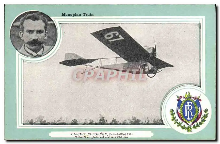 Cartes postales Aviation Avion Monoplan Train Circuit europeen Juin Juillet 1911 Train en vol arrive a Chalons