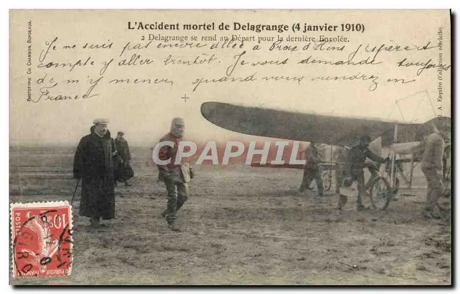 Cartes postales Avion Aviation Accident mortel de Delagrange 4 janvier 1910 Delagrange se rend au depart pour la
