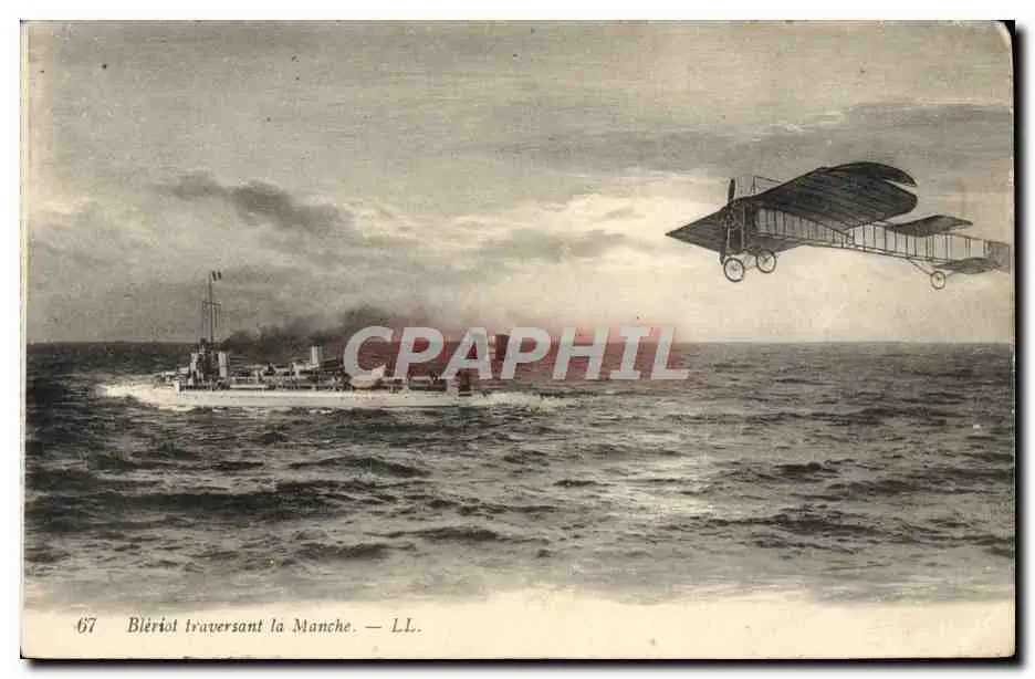 Cartes postales Avion Aviation Bleriot traversant la Manche Bateau