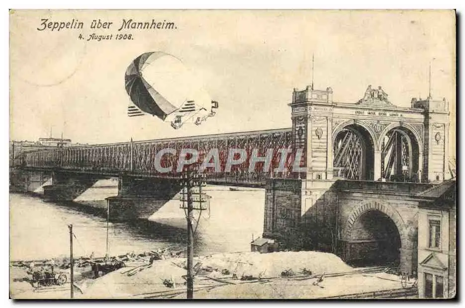 Cartes postales Avion Aviation Dirigeable Zeppelin uber Mannheim 1908