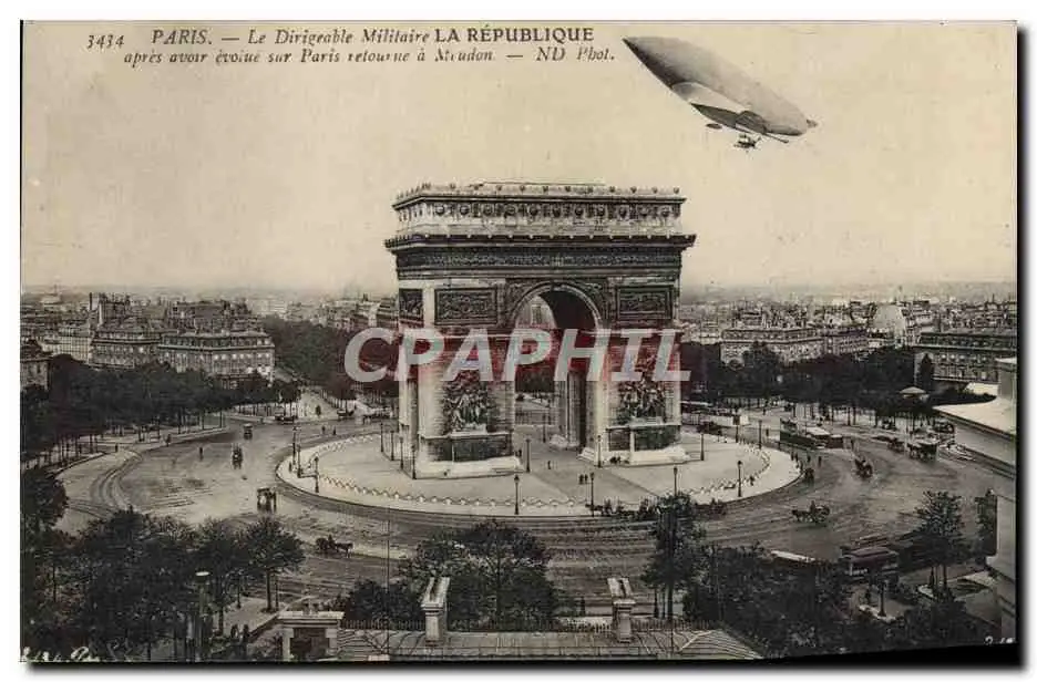 Cartes postales Avion Aviation Dirigeable militaire La Republique Paris Arc de Triomphe Zeppelin