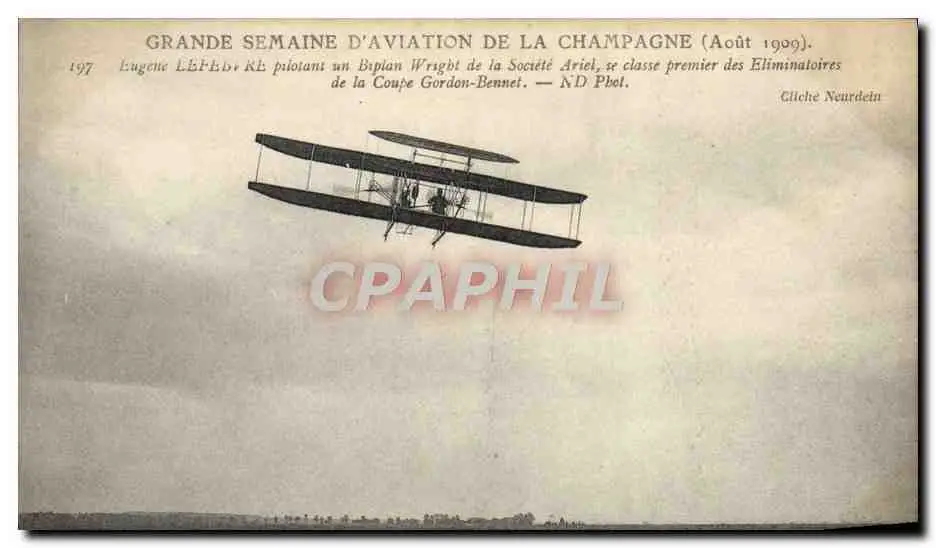 Cartes postales Avion Aviation Grande semaine de l&#39aviation de la Champagne Eugene Lefebre pilotant un biplan