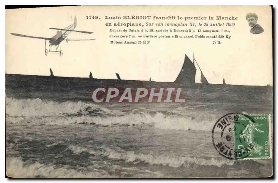Cartes postales Avion Aviation Louis Bleriot franchit le premier la Manche en aeroplane