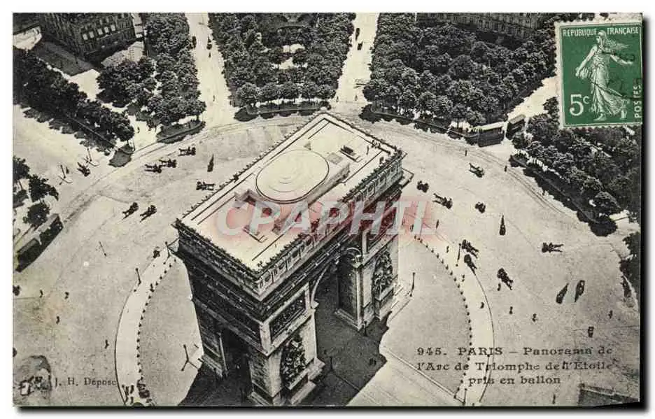 Cartes postales Avion Aviation Paris panorama de l'Etoile pris en ballon