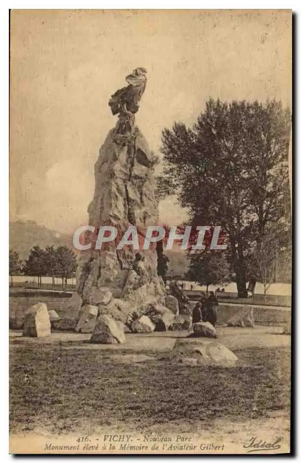 Cartes postales Avion Aviation Vichy Nouveau parc Monument eleve a la memoire de l&#39aviateur Gilbert