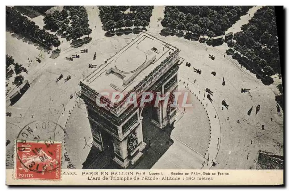 Cartes postales Avion Aviation paris en Ballon L&#39arc de Triomphe de l&#39Etoile