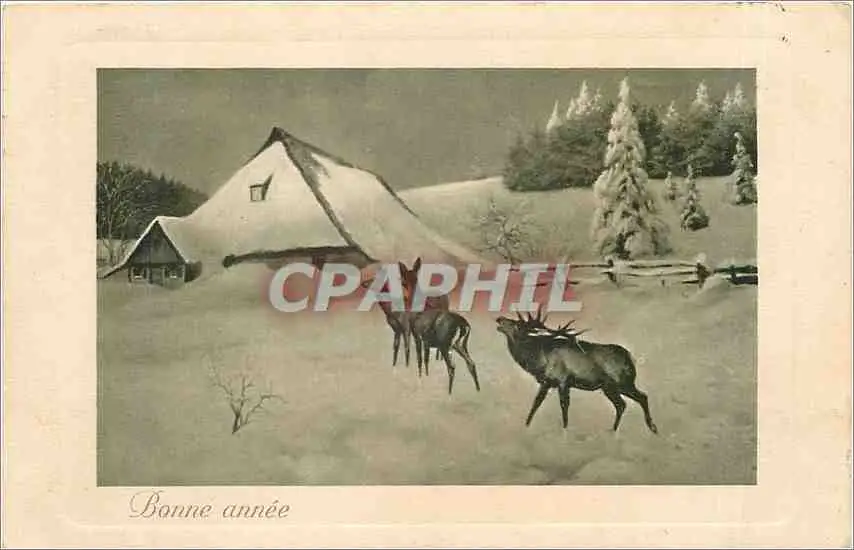 Cartes postales BONNE ANNEE Cerfs Biches
