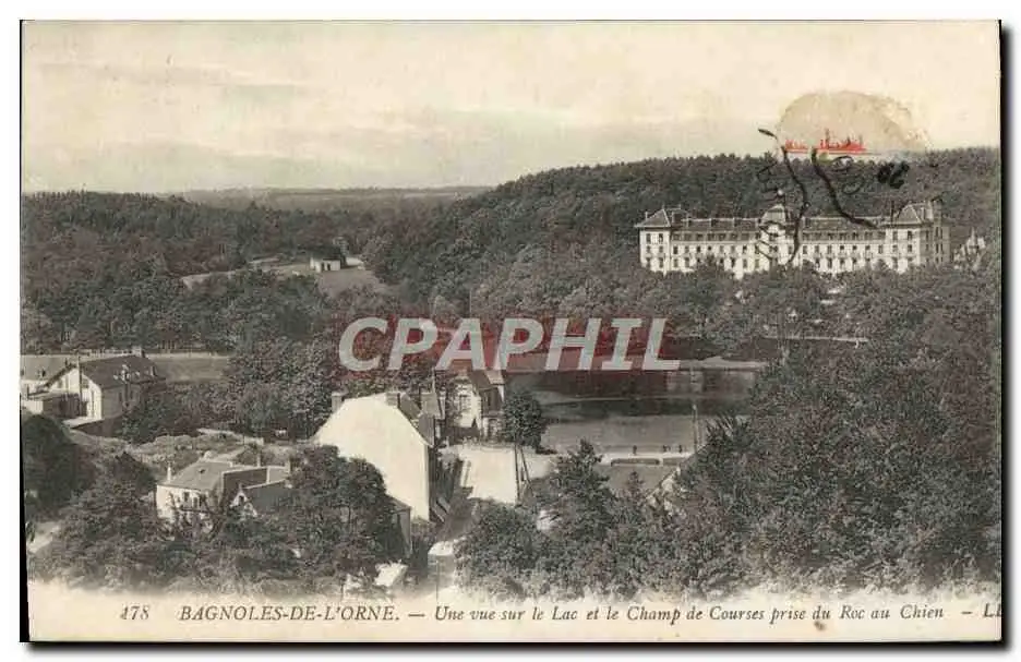 Cartes postales Bagnoles De L&#39Orne Une vue sur le Lac et le Champ de Courses prise du Roc au Chien