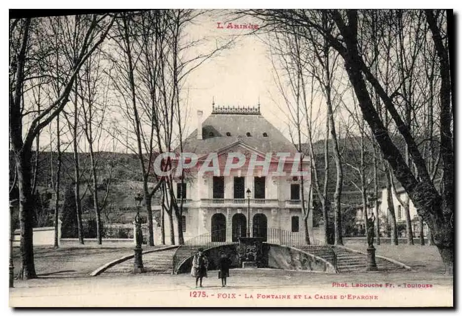 Cartes postales Banque Caisse d&#39Epargne Foix la fontaine et la Caisse d&#39Epargne