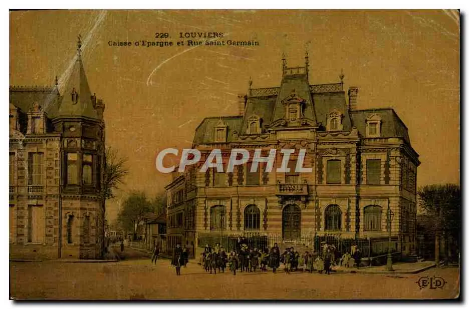 Cartes postales Banque Caisse d'Epargne et rue Saint Germain Louviers (carte toilee)