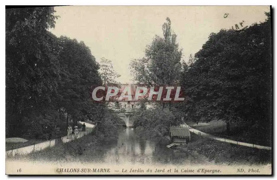 Cartes postales Banque Chalons sur Marne Le jardin du Jard et la Caisse d&#39Epargne