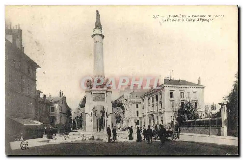 Cartes postales Banque Chambert Fontaine de Boigne La Poste et la Caisse d&#39Epargne Elephant