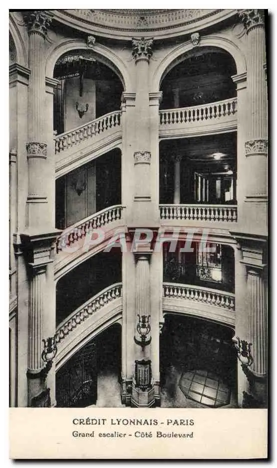Cartes postales Banque Credit Lyonnais Paris Grand escalier Cote boulevard