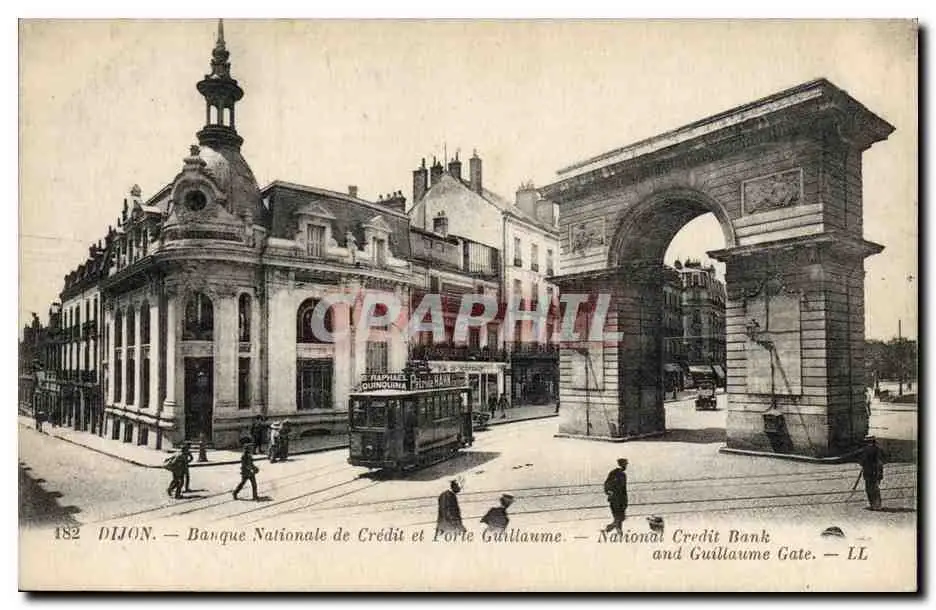 Cartes postales Banque Dijon Banque Nationale de Credit et Porte Guillaume Tramway