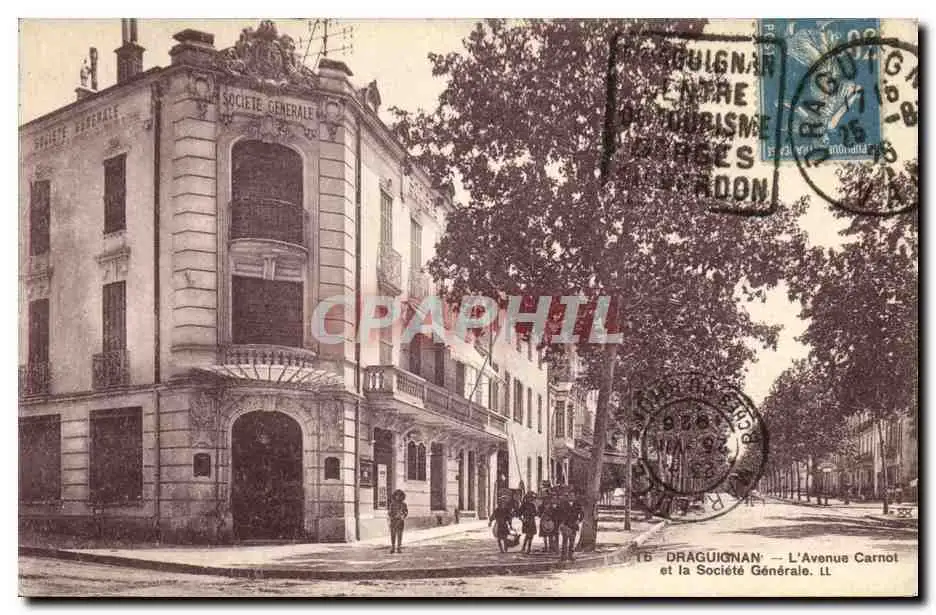 Cartes postales Banque Draguignan L&#39avenue Carnot et la Societe Generale