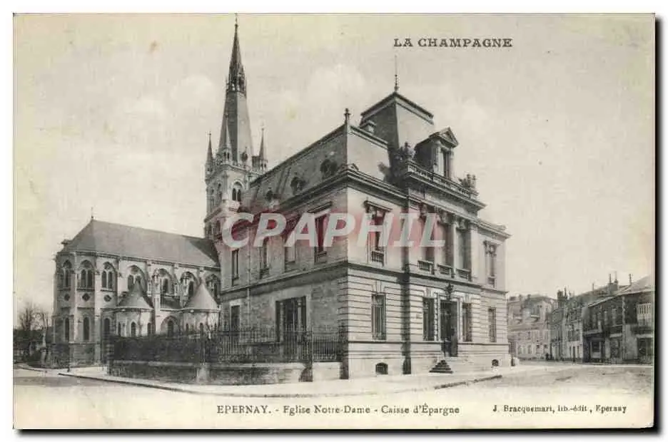 Cartes postales Banque Epernay Eglise Notre Dame Caisse d'Epargne