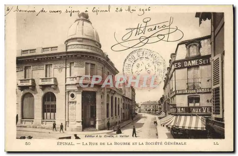 Cartes postales Banque Epinal La rue de la Bourse et la Societe Generale