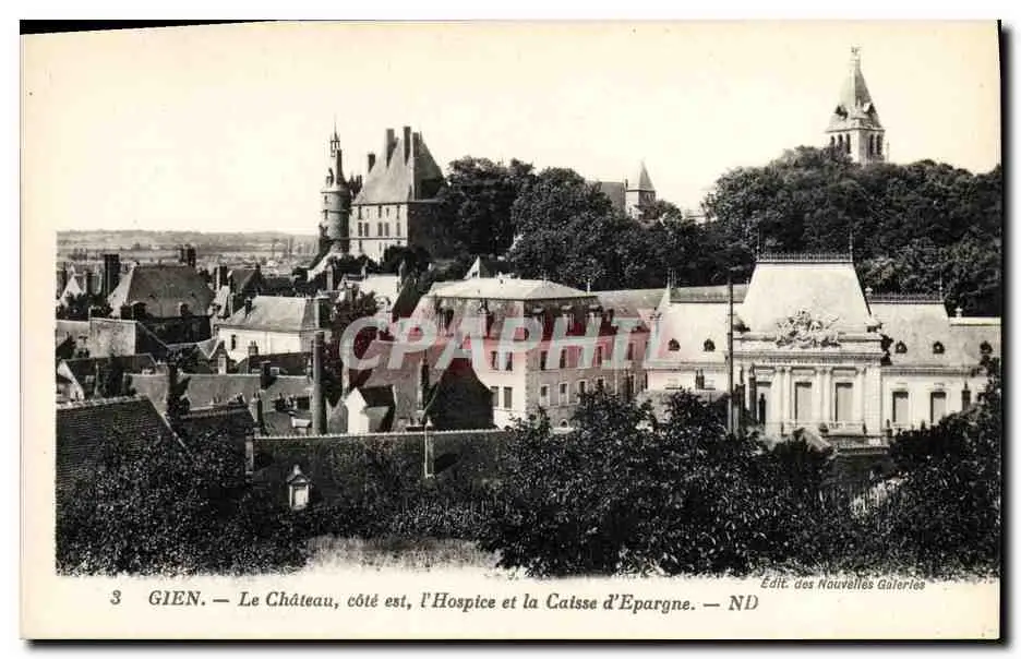 Cartes postales Banque Gien Le chateau cote est L&#39hospice et la Caisse d&#39Epargne