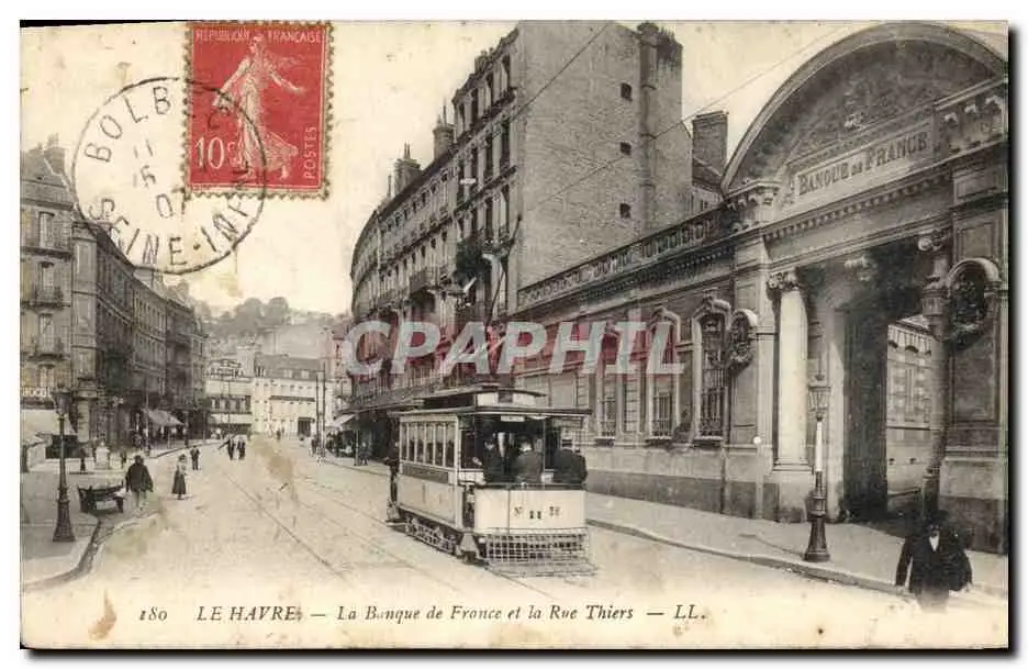 Cartes postales Banque Le Havre La Banque de France et la rue Thiers Tramway