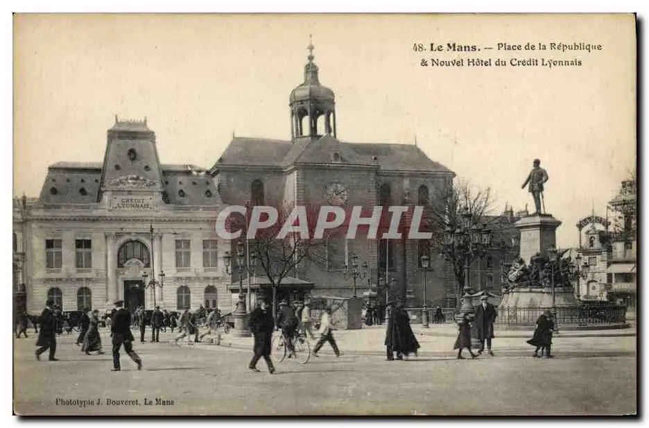Cartes postales Banque Le Mans Place de la Republique et nouvel Hotel du Credit Lyonnais