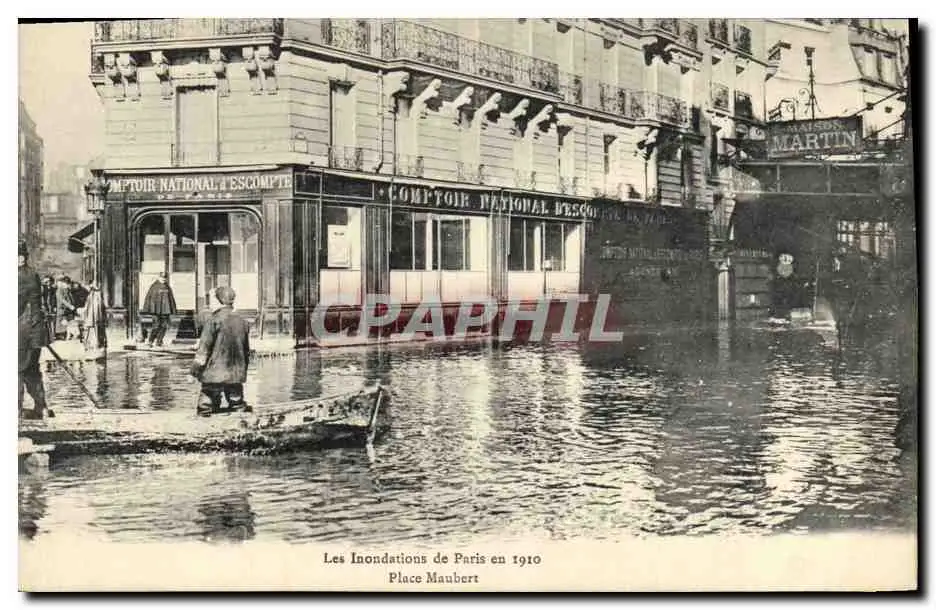 Cartes postales Banque Les Inondations de Paris en 1910 Place Maubert Comptoir d'Escompte