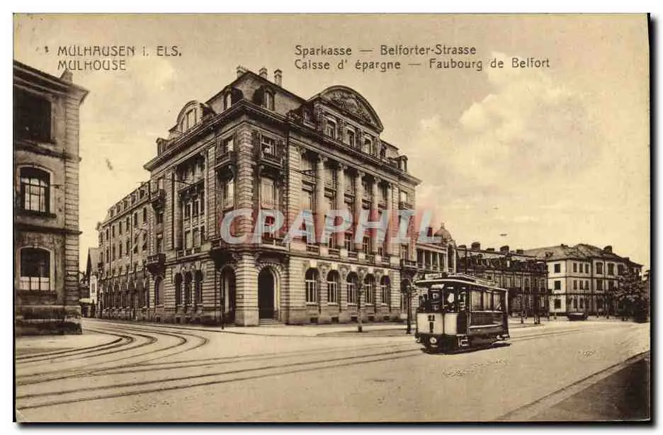 Cartes postales Banque Mulhouse Caisse d&#39Epargne Faubourg de Belfort Tramway