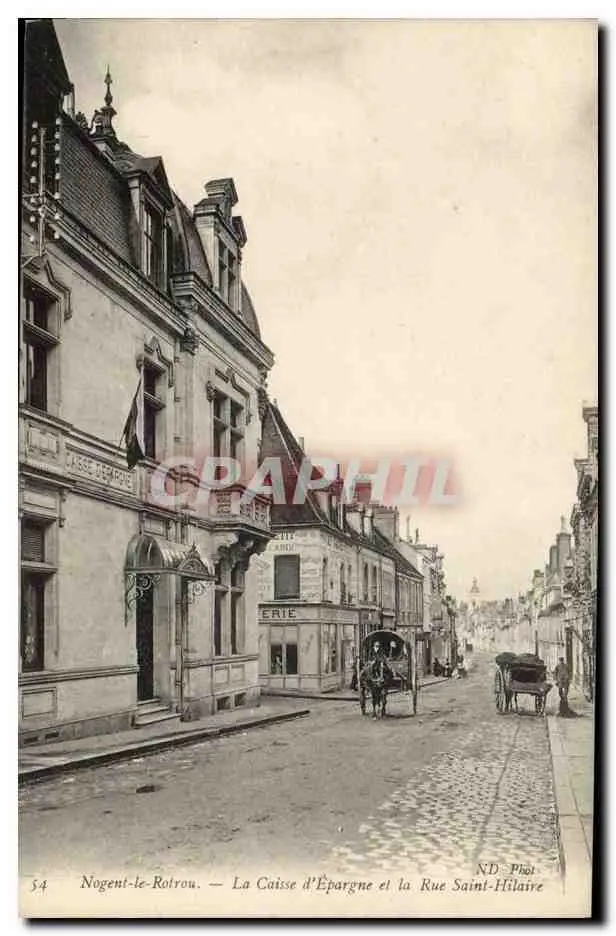 Cartes postales Banque Nogent la Rotrou La Caisse d&#39Epargne et la Rue Saint Hilaire