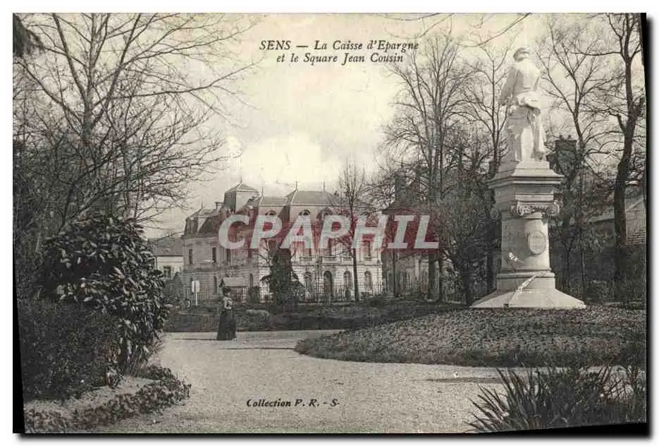 Cartes postales Banque Sens La Caisse d&#39Epargne et le square Jean Cousin