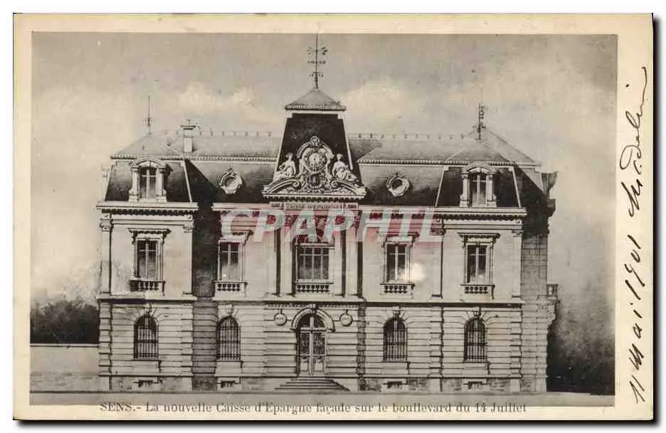 Cartes postales Banque Sens La nouvelle Caisse d&#39Epargne facade sur la boulevard du 14 juillet