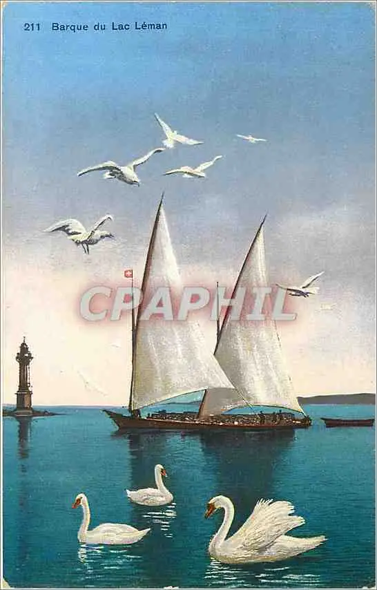 Cartes postales Barque du Lac Leman Bateau Cygnes