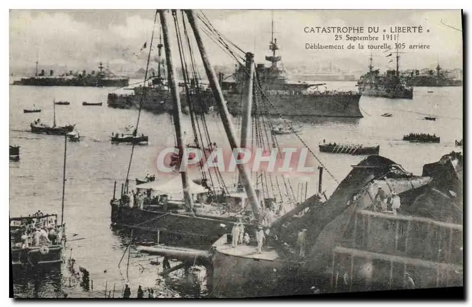 Cartes postales Bateau Catastrophe du Liberte Deblaiement de la tourelle 305 arriere