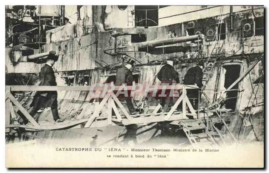 Cartes postales Bateau Guerre Catastrophe Du Iena Monsieur Thomson Ministre de la Marine se rendant a bord
