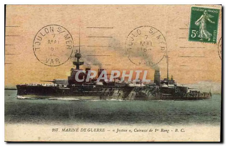 Cartes postales Bateau Justice Cuirasse de 1er rang