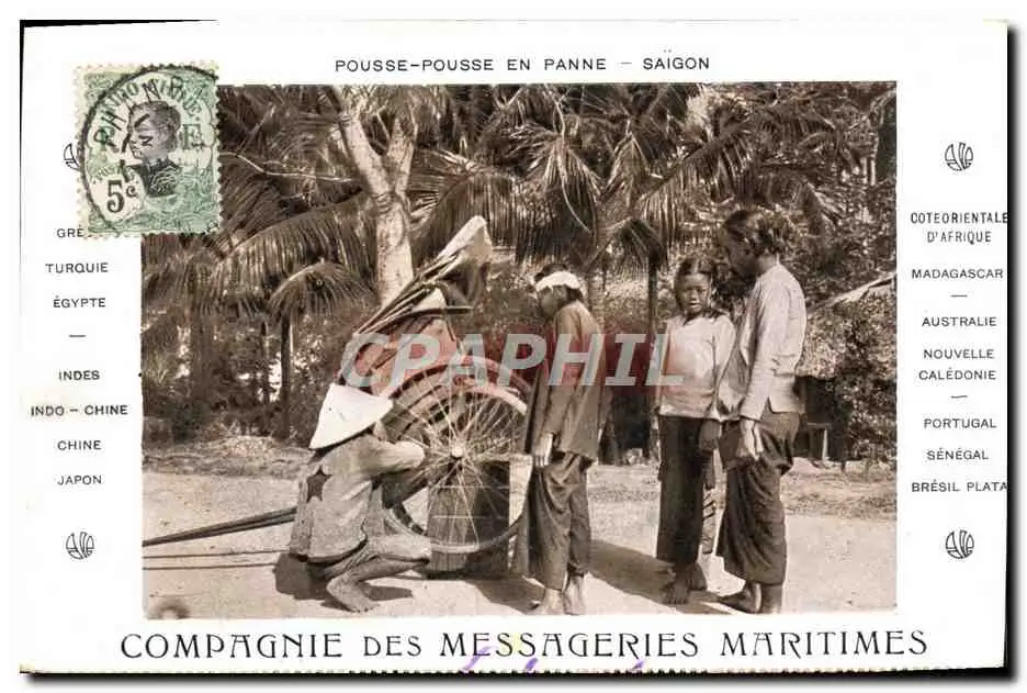 Cartes postales Bateau Messageries Maritimes Pousse Pousse Saigon Indochine