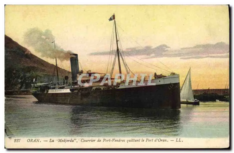 Cartes postales Bateau Oran La Medjerda Courrier de Port Vendres quittant le port d&#39Oran