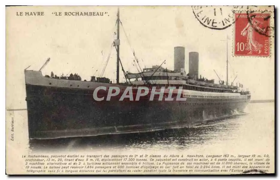 Cartes postales Bateau Paquebot Le Havre Rochambeau