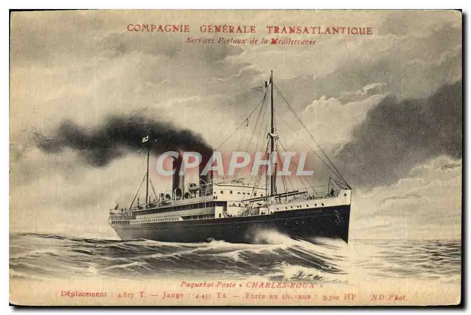 Cartes postales Bateau Paquebot Poste Compagnie Generale Transatlantique Charles Roux
