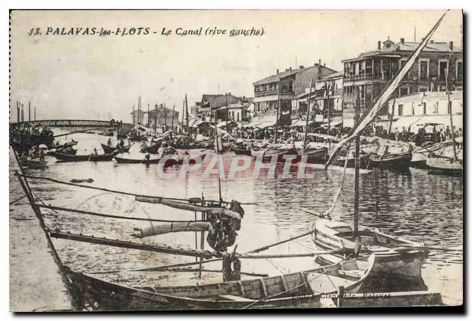 Cartes postales Bateau Peche Palavas les Flots Le canal Rive gauche