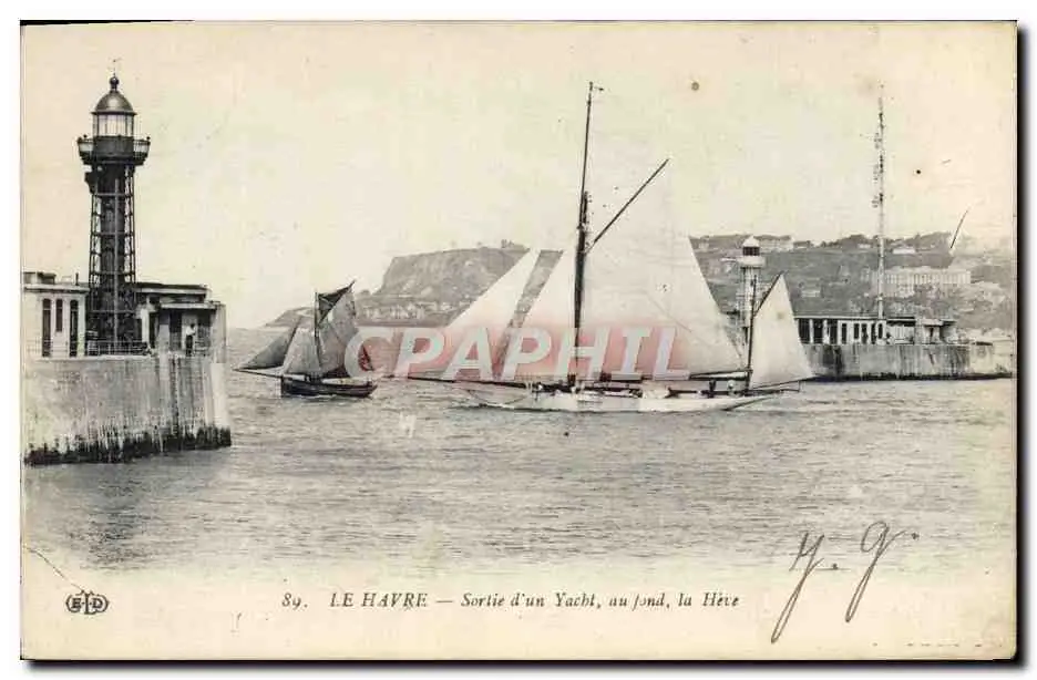 Cartes postales Bateau Voilier Le Havre Sortie d&#39un yacht au fond la Heve