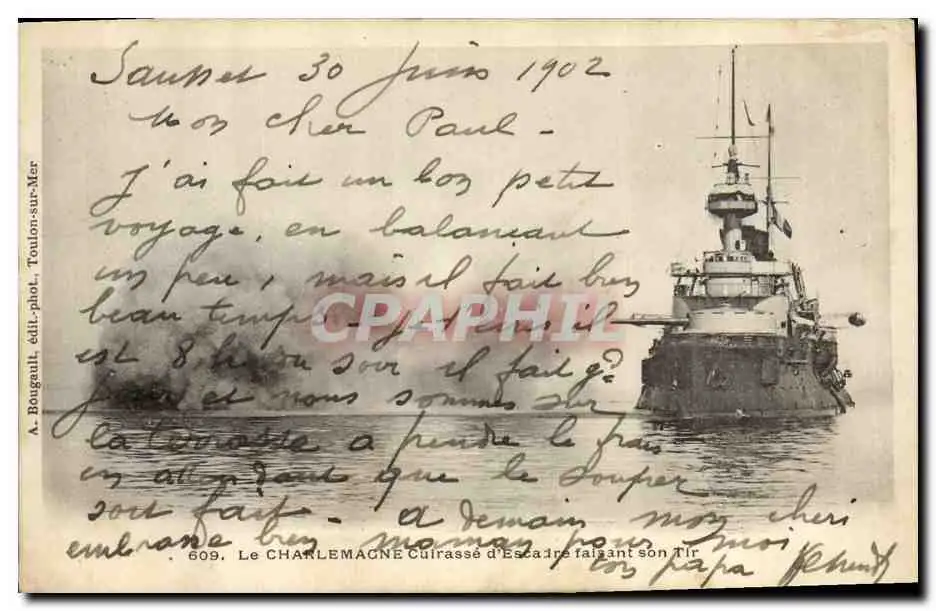Cartes postales Bateau de Guerre Le Charlemagne Cuirasse d'Escadre faisant son Tir