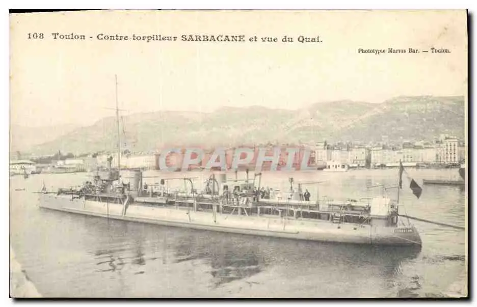 Cartes postales Bateau de Guerre Toulon Contre torpilleur Sarbacane et vue du quai