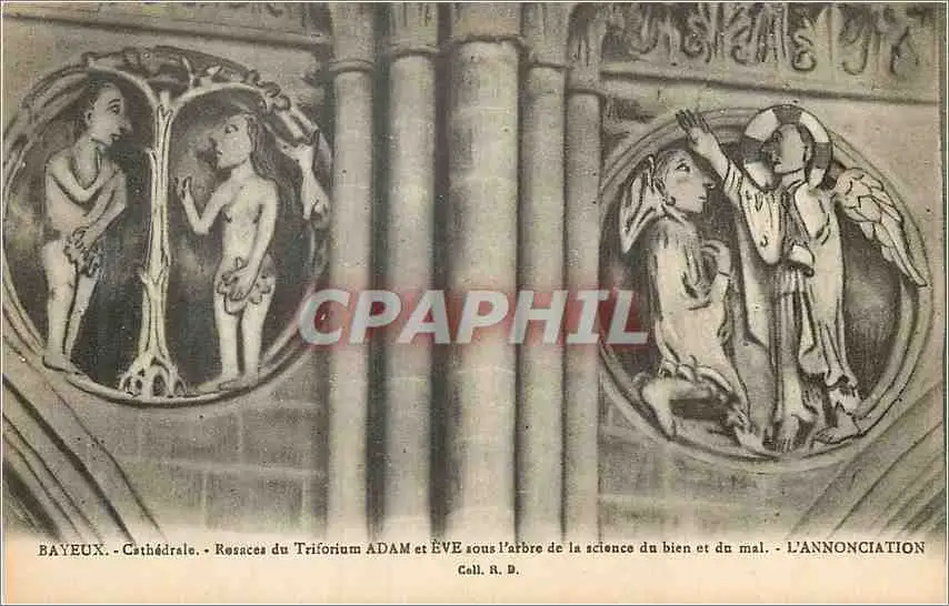 Cartes postales Bayeux Cathedrale Rosaces du Triforium Adam et Eve sous l'Arbre de la Science du Bien et du Mal