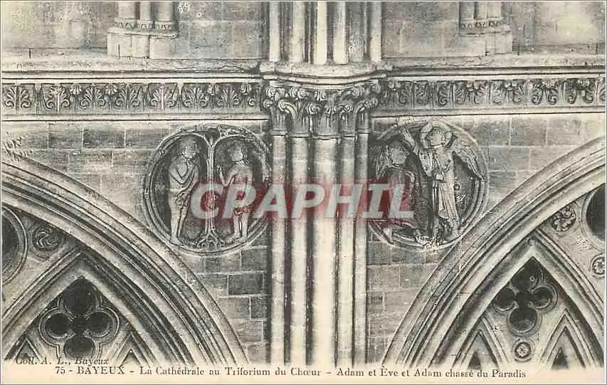 Cartes postales Bayeux La Cathedrale au Triforium du Choeur Adam et Eve et Adam Chasse du Paradis