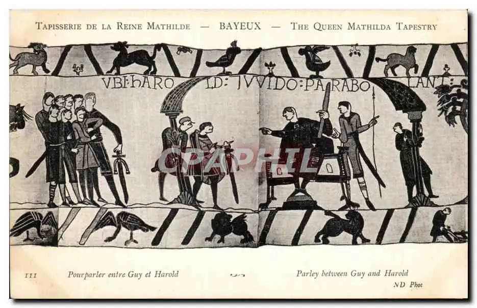 Cartes postales Bayeux Tapisserie de la Reine Mathilde Pourparler entre Guy et Harold