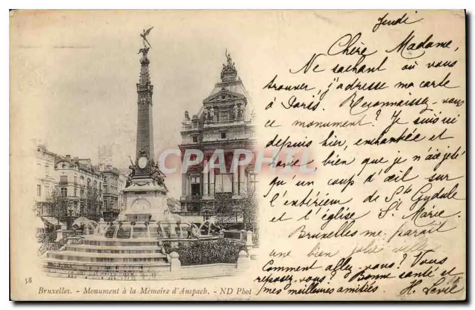 Cartes postales Belgique Bruxelles Monument a la memoire d'Anspach