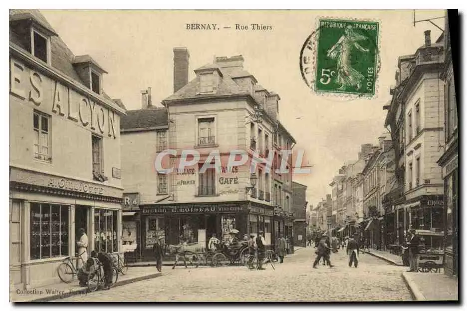 Cartes postales Bernay Rue Thiers Voiture a ane Mule Enfants Velo Cycle (bonne animation)