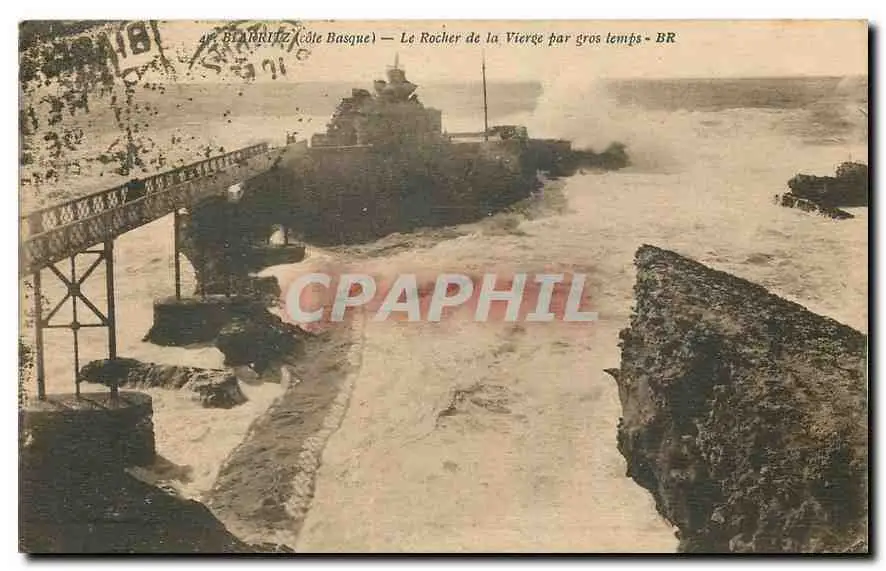 Cartes postales Biarritz Cote Basque Le Rocher de la Vierge par gros temps