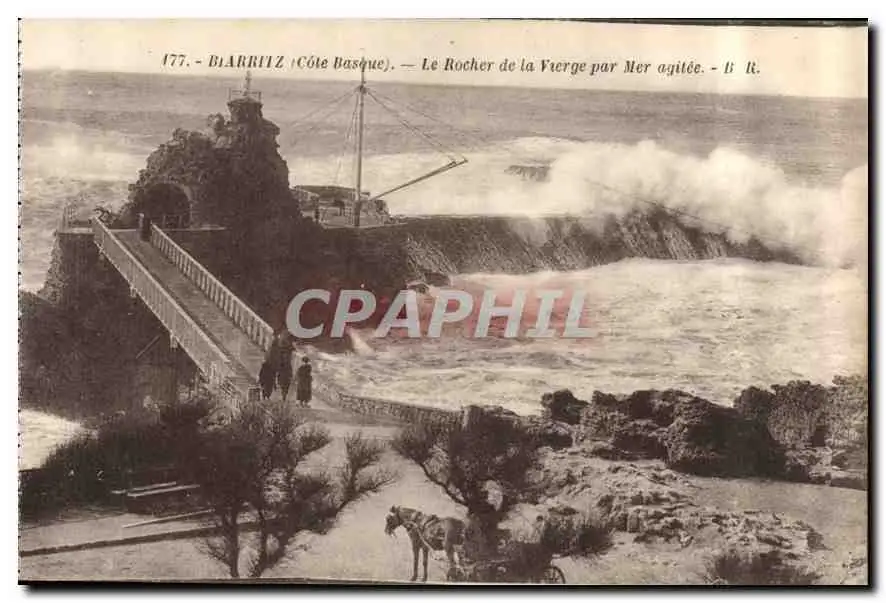 Cartes postales Biarritz Cote Basque le Rocher de la Vierge par Mer Agitee
