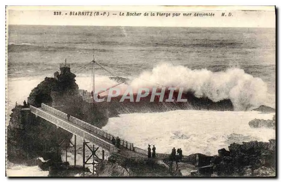 Cartes postales Biarritz La Rocher de la Vierge Par Mer Demontee